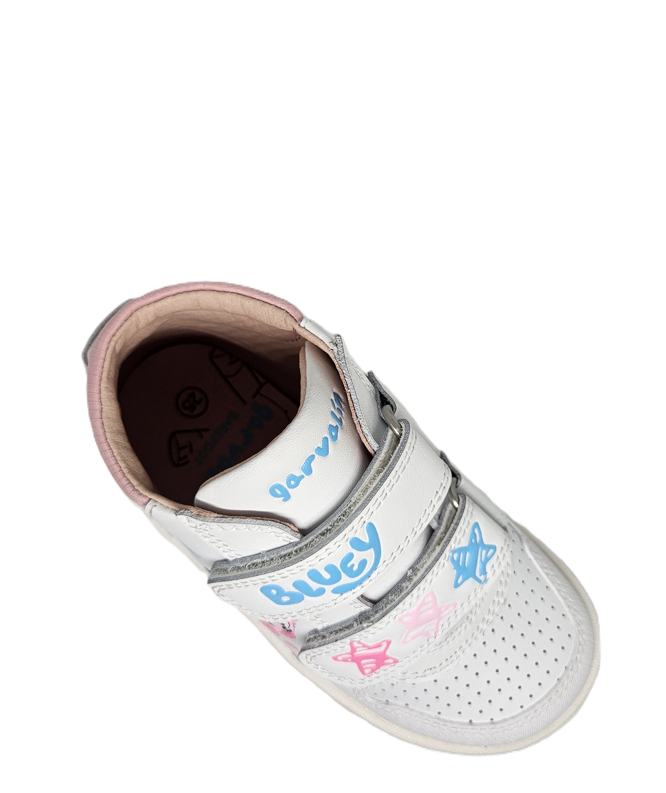 Biele nadčasové tenisky s jemným detailom Bluey psíkom.