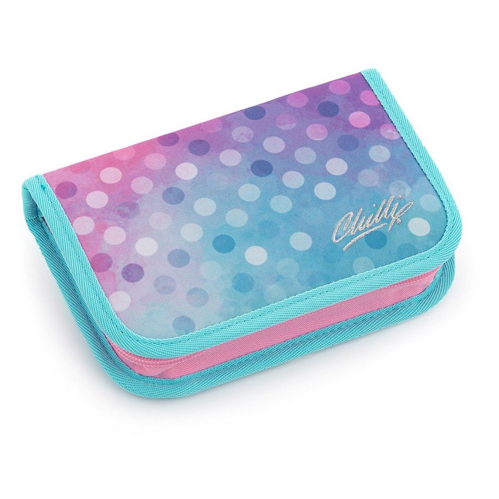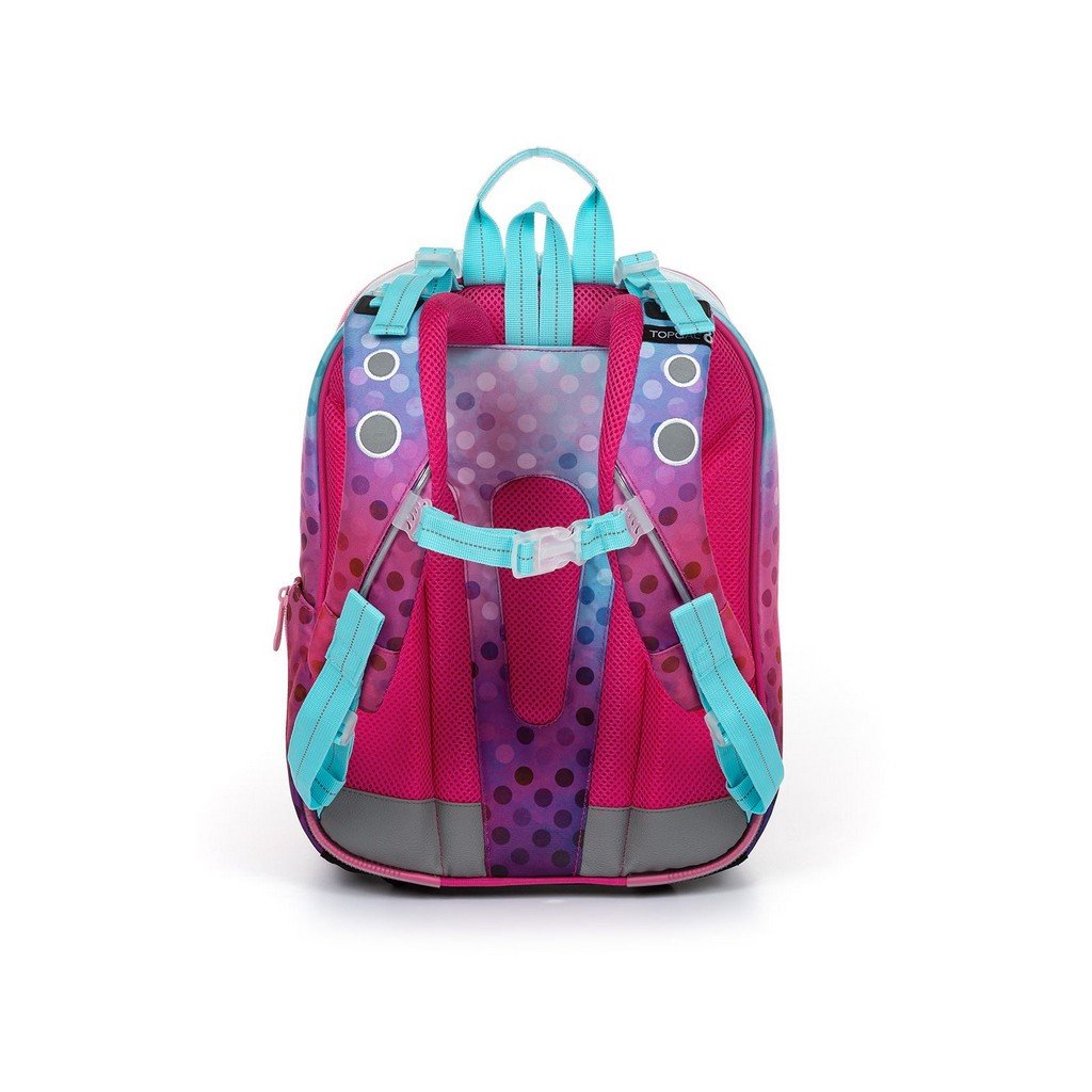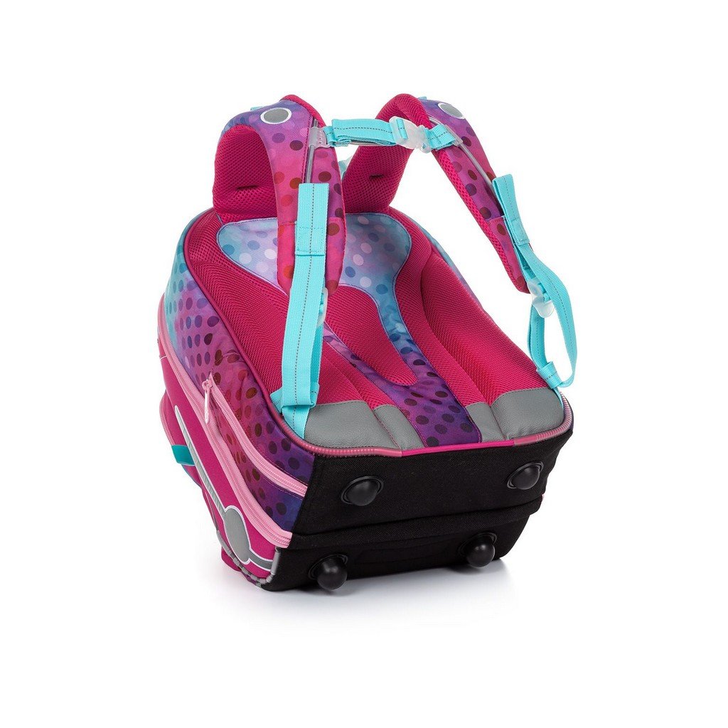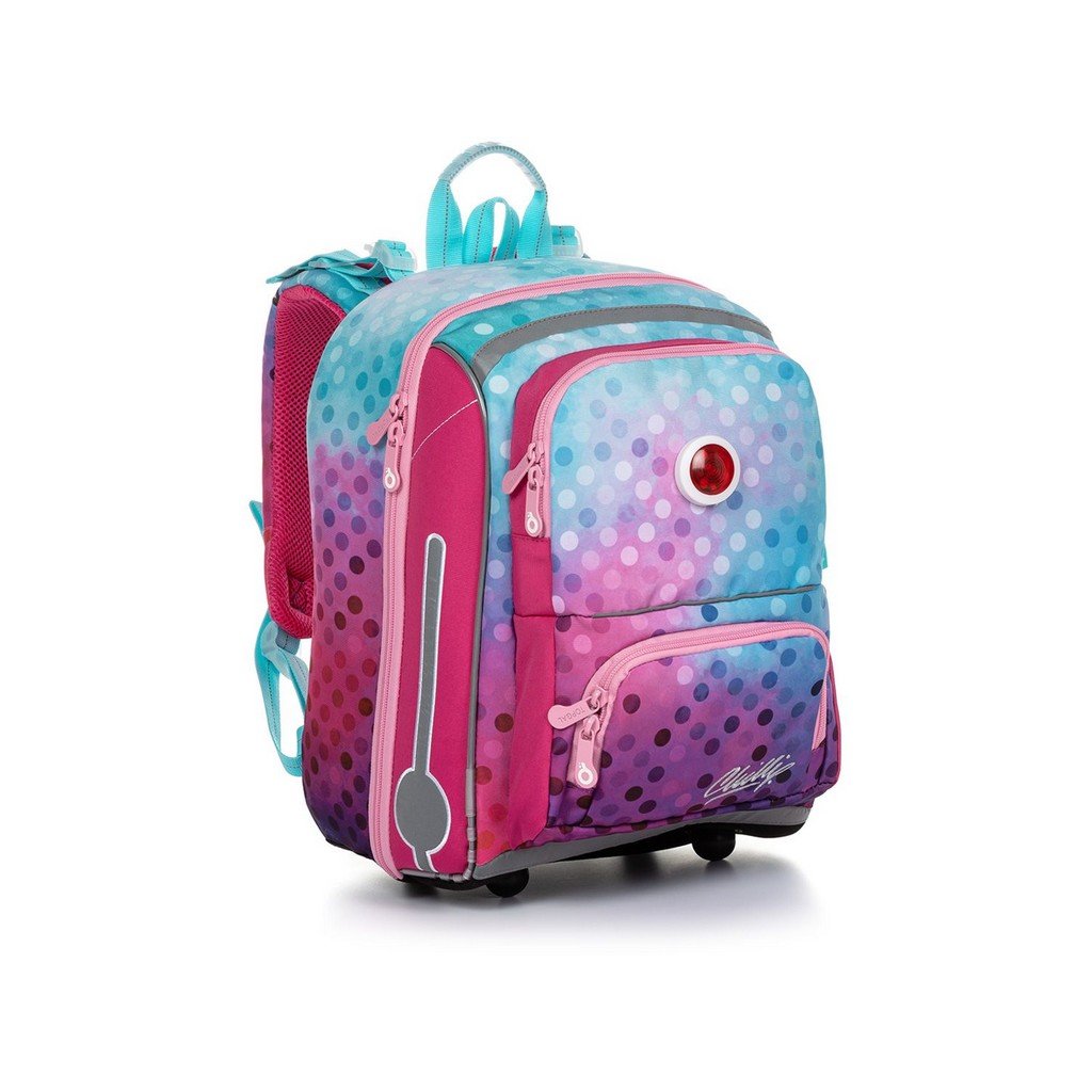 SET Taška a peračník: Školská taška pre najmenšíe školáčky s blikačkou na prednom vrecku a prehľadným jednokomorovým členením. Veľkosťou vhodná pre tie najdrobnejšie dievčatá do 1. - 2. triedy základných škôl. Navyše vždy aktuálny dizajn s obľúbenými bodkami.
