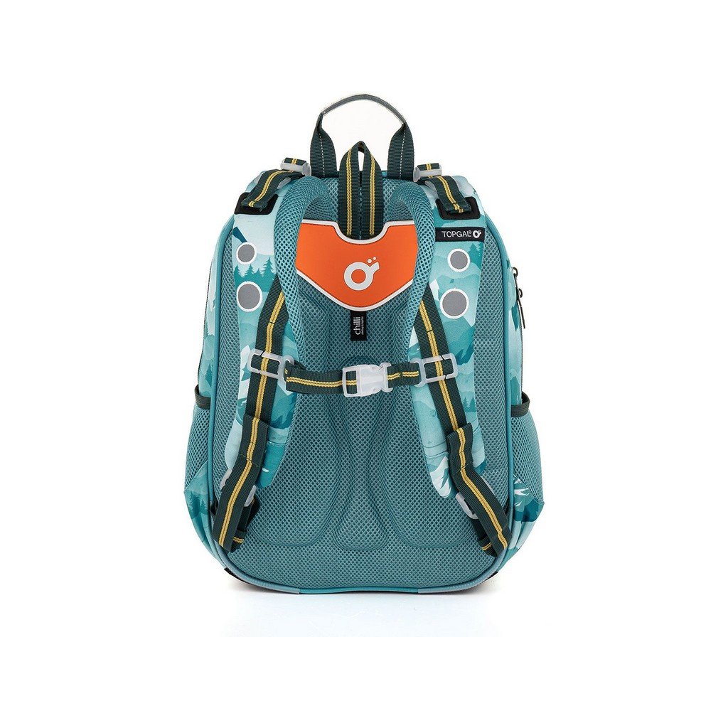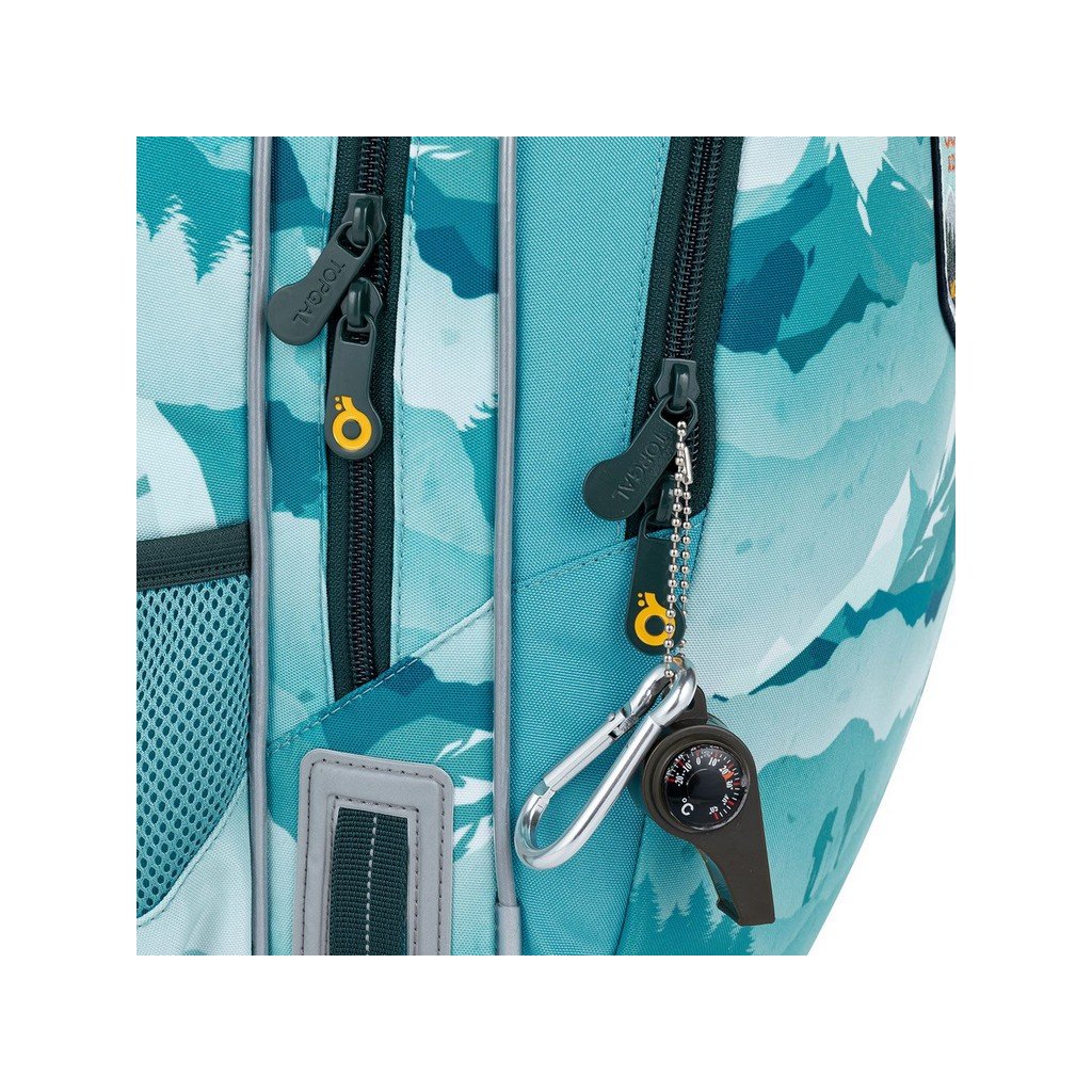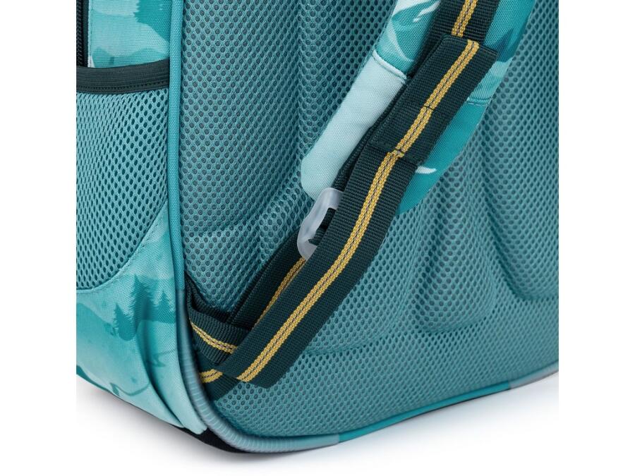 Taška má dve objemné hlavné komory. Zadná komora je priestrannejšia a spoľahlivo pojme všetko učivo. Predná komora je o niečo užšia a je v nej umiestnené ešte malé sieťované vrecko na zips a menovka. Do predného hlbokého vrecka sa zmestí napr. peračník PENN 23014 v rovnakom dizajne alebo box na desiatu. Do bočných vreciek sa zmestia 0,5-litrové fľaše, napr. naša ZIVA.