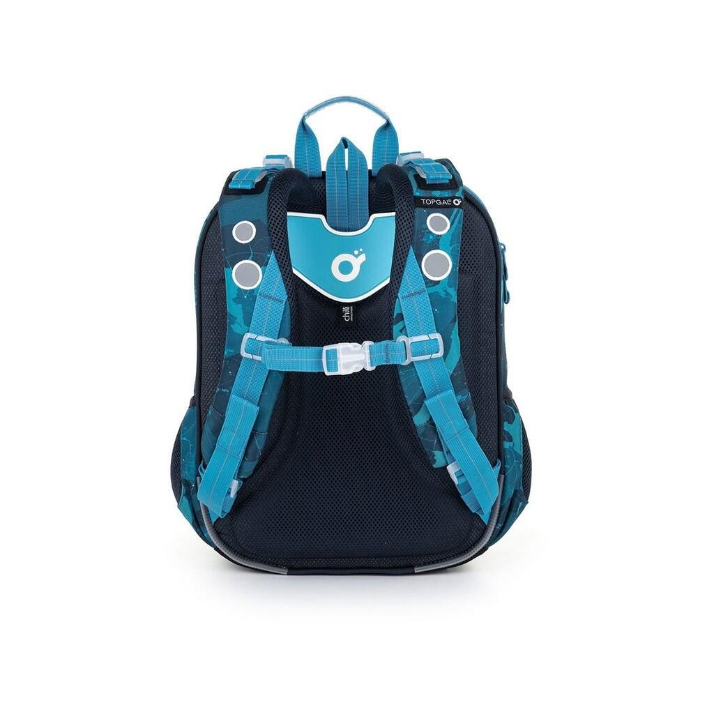 Chrbtový systém batohu BAZI je pevne vytvarovaný z mäkkej lisovanej peny. Pohodlné každodenné nosenie zabezpečujú polstrované, anatomicky tvarované ramenné popruhy, ktoré sa dajú utiahnuť v hornej a dolnej časti. Vďaka tomu ich môžete správne nastaviť aj pre drobný chrbát malého školáka. Pevný, výškovo nastaviteľný hrudný pás zaručuje, že popruhy neskĺznu ani z úzkych ramien.