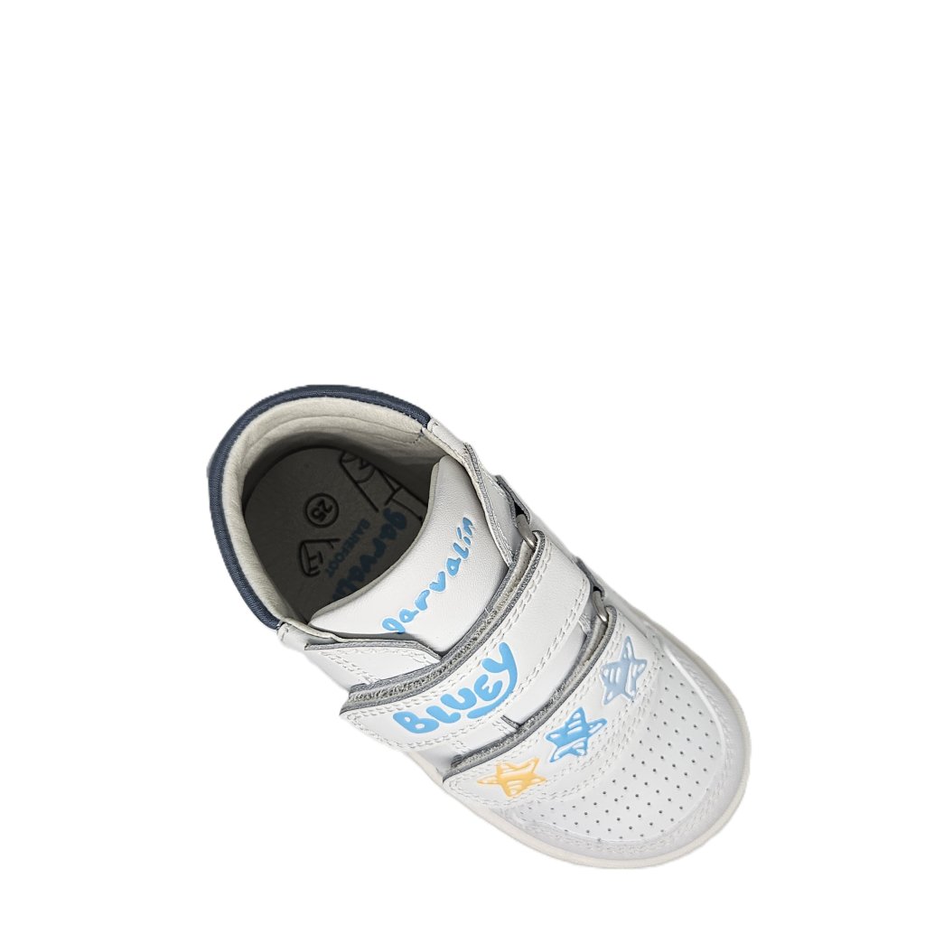 Biele nadčasové tenisky s jemným detailom Bluey psíkom.